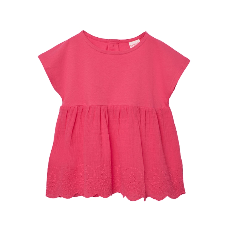 Η Boboli μπλούζα κοντό μανίκι 323020 σε ματζέντα χρώμα προσθέτει ένταση και φρεσκάδα σε κάθε παιδική εμφάνιση. Η Boboli σχεδιάζει ένα άνετο και πρακτικό ρούχο για καθημερινή χρήση.