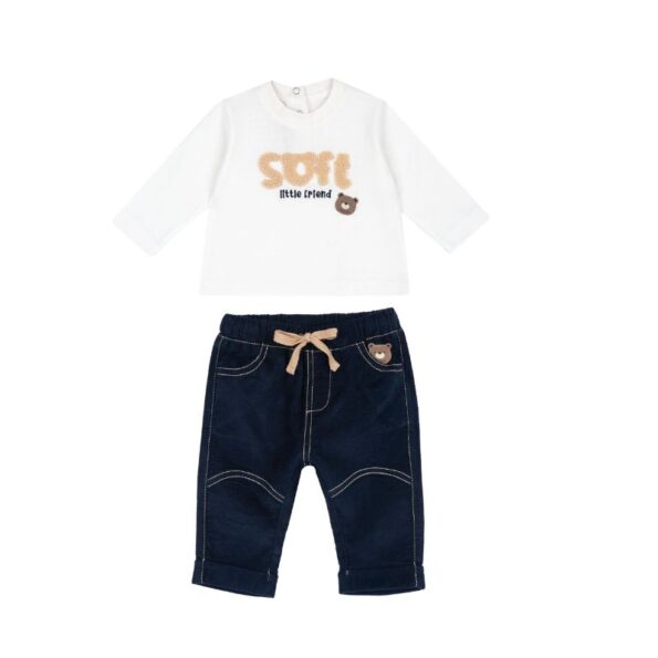 CHICCO ΣΕΤ ΜΠΛΟΥΖΑ ΜΑΚΡΥ ΜΑΝΙΚΙ ΜΕ ΒΕΛΟΥΔΙΝΟ ΜΠΛΕ ΠΑΝΤΕΛΟΝΙ ΑΡΚΟΥΔΑΚΙ 100796