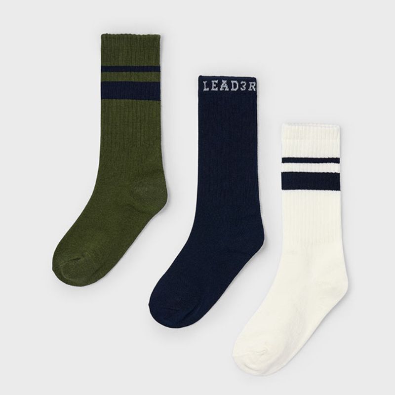 Το MAYORAL 10053 είναι ένα πρακτικό και χαριτωμένο σετ με 3 ζευγάρια παιδικές κάλτσες σε αποχρώσεις Λαδί Χακί με παιχνιδιάρικα σχέδια. Κατασκευασμένες από απαλό και ελαστικό βαμβακερό ύφασμα, προσφέρουν άνεση και σωστή εφαρμογή όλη την ημέρα.