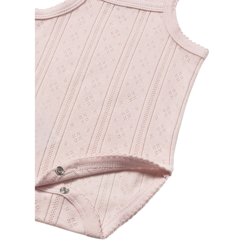 Το κοντό μανίκι το καθιστά ιδανικό για τους πιο ζεστούς μήνες ή ως εσωτερικό ρούχο κάτω από φορμάκια και σετ. Διαθέτει πρακτικά κουμπώματα στο κάτω μέρος για εύκολη αλλαγή πάνας, ενώ η απαλή ροζ απόχρωση χαρίζει γλυκό και διακριτικό στυλ.
