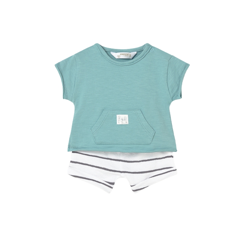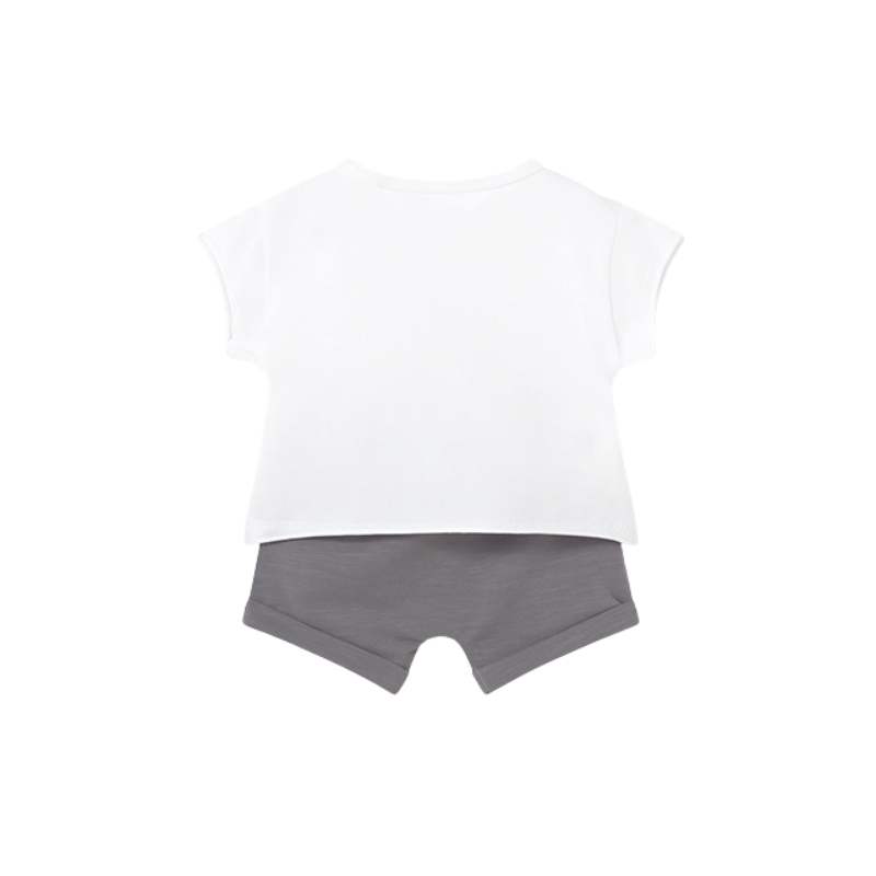 Κατασκευασμένο από απαλό βαμβακερό ύφασμα, φιλικό προς το ευαίσθητο βρεφικό δέρμα, προσφέρει άνετη εφαρμογή και ελευθερία κινήσεων. Οι γλυκές αποχρώσεις λευκού και βεραμάν χαρίζουν φρεσκάδα, ενώ ο προσεγμένος σχεδιασμός Mayoral εγγυάται αντοχή και πρακτικότητα.