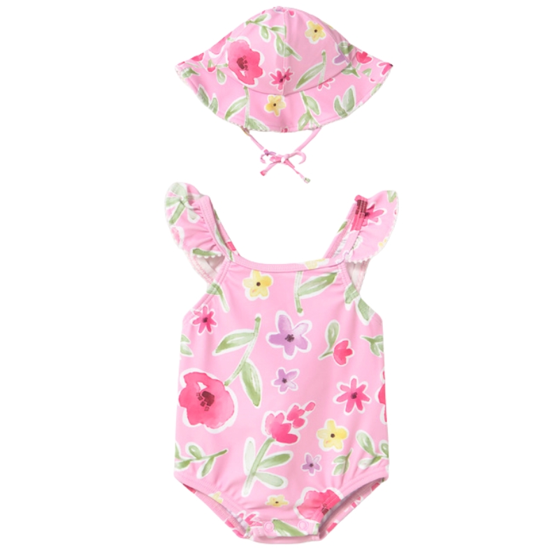 Το μαγιό είναι κατασκευασμένο από απαλό και ελαστικό ύφασμα, κατάλληλο για το ευαίσθητο βρεφικό δέρμα, ενώ το ταιριαστό καπέλο προσφέρει επιπλέον προστασία από τον ήλιο. Η άνετη εφαρμογή επιτρέπει ελευθερία κινήσεων, καθιστώντας το σετ ιδανικό για την παραλία ή την πισίνα.