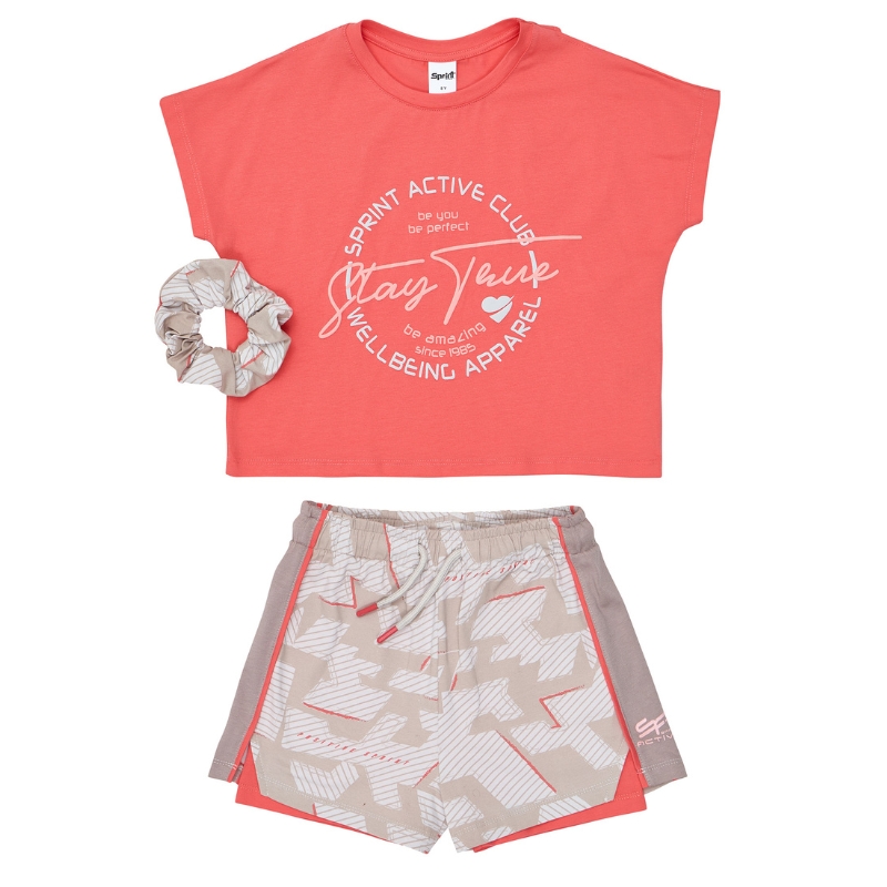 Το παιδικό σετ κοριτσιού SPRINT 261-4016 χαρίζει γλυκό και κοριτσίστικο look. Κοραλί χρώμα. Φρέσκια και χαρούμενη εικόνα. Ιδανικό για καθημερινές εμφανίσεις και παιχνίδι.